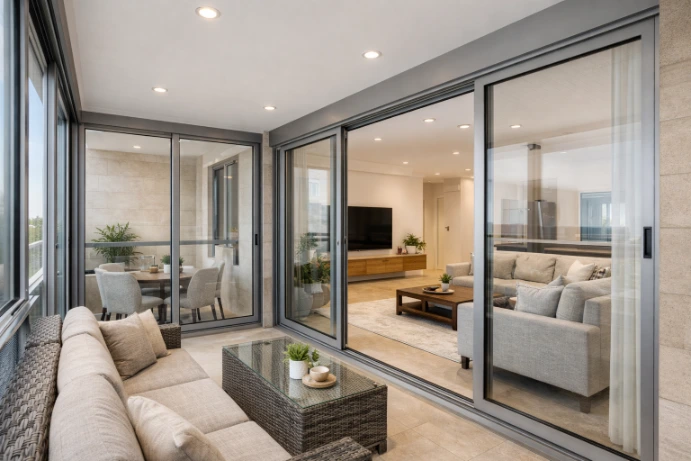 סגירת מרפסת עם חלונות הזזה מזכוכית ואלומיניום